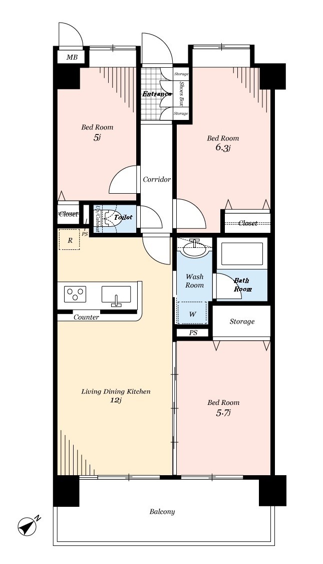 専有面積 | 63.02m2 (約19.06坪) | バルコニー面積 | 10.30m2 (約3.11坪) |
