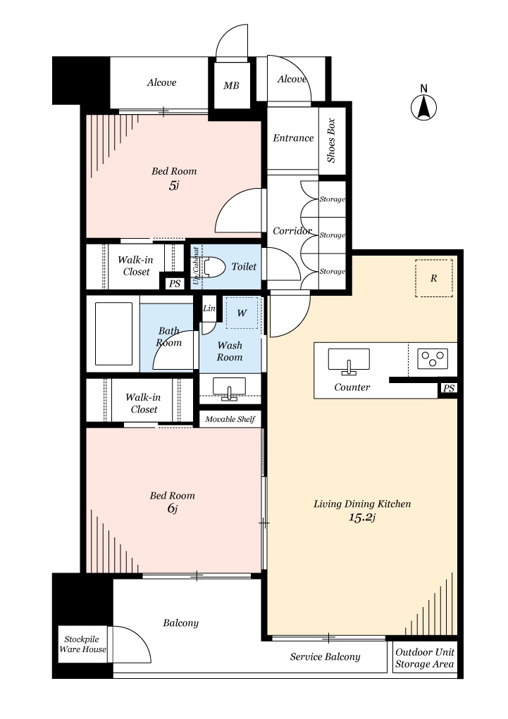 | 専有面積 | 60.02m2 (約18.15坪) | バルコニー面積 | 4.96m2 (約1.5坪) |